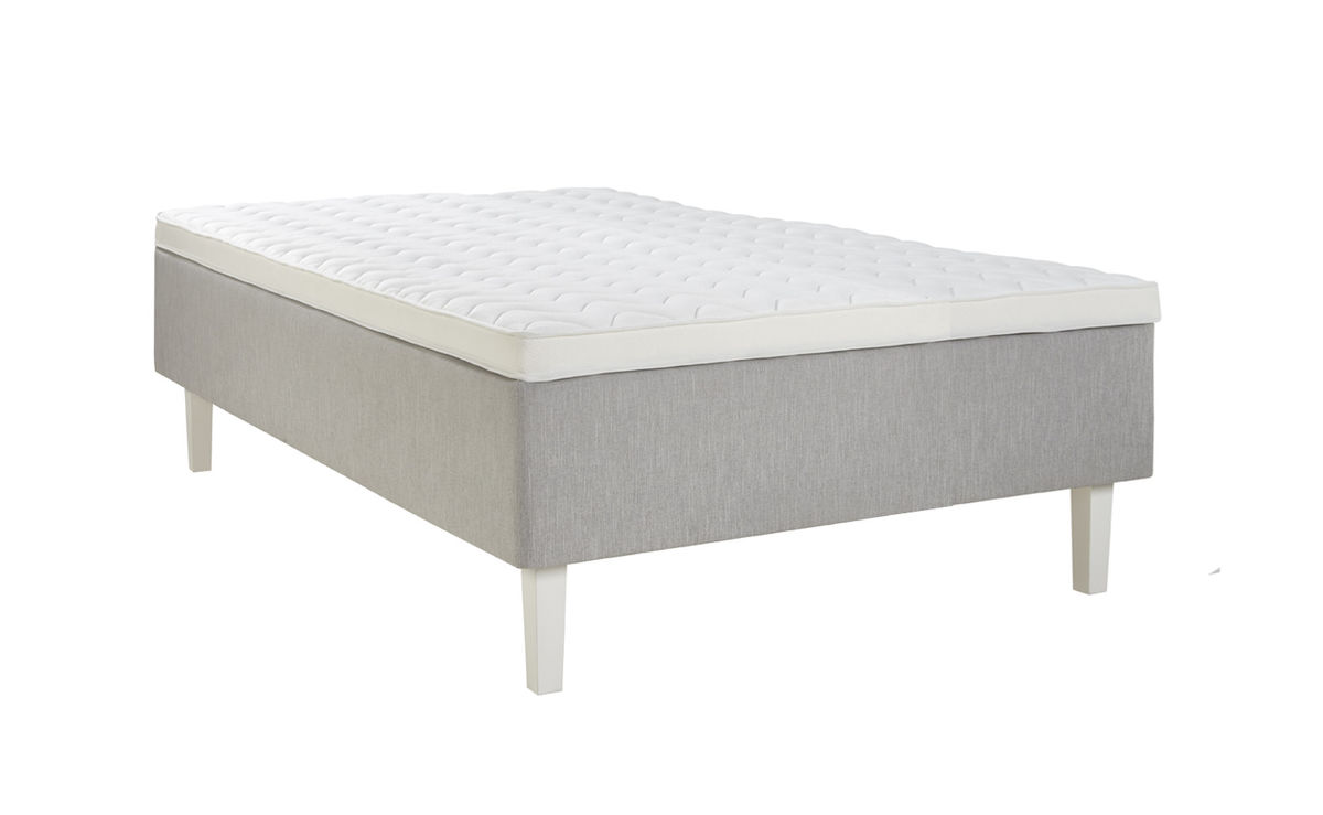 Sänky on verhoiltu vaaleanharmaalla Melva 83 -huonekalukankaalla ja valkoisella stretch-kankaalla, jotka luovat modernin ja raikkaan ilmeen. Jousiston päällä oleva 4 cm paksu vaahtomuovikerros lisää pintapehmeyttä ja tukee nukkumismukavuutta. Mukana tuleva 7 cm paksu petauspatja on valmistettu 25 kg vaahtomuovista ja verhoiltu valkoisella stretch-kankaalla, mikä täydentää kokonaisuuden ylellisellä tuntumalla ja helppohoitoisuudella.
