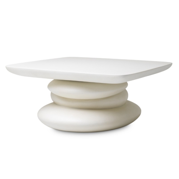 Azura sohvapöytä hurmaa orgaanisella muotokielellään, joka jäljittelee päällekkäin aseteltujen kivien pehmeitä, luonnollisia linjoja. Sen veistoksellinen ilme tekee sohvapöydästä näyttävän sisustuselementin, joka tuo tilaan rauhallista tasapainoa ja harmonista estetiikkaa. Tämä design-sohvapöytä on täydellinen valinta moderniin ja ylelliseen olohuoneeseen. Pöytä on valmistettu GFRC materiaalista, joka on lasikuitubetonia eli komposiittimateriaali. Komposiitti on huokoinen materiaali, joka muistuttaa luonnonkiveä.