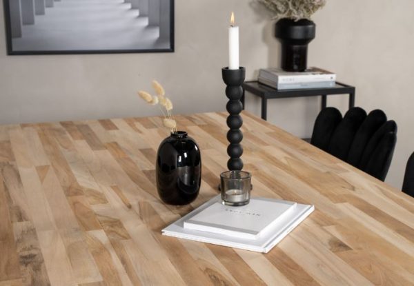 - Yksinkertainen ja tyylikäs Bali ruokapöytä. Pöytälevy on tiikkipuuta ja tyylikäs kapea jalka mustaa metallia. Bali tuo luonnollisuutta kotiisi ja se on helppo yhdistää muihin huonekaluihin.