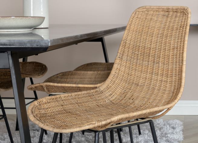 • Trooppinen tunnelma: Bali-tuolit tuovat kotiisi eksoottista ja rentouttavaa ilmapiiriä luonnonvaalean rottingin ja mustien metallijalkojen yhdistelmällä.