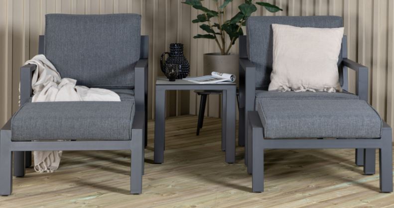 Barcelona-sohvaryhmä on mukava ja tyylikäs musta alumiinirunkoinen ryhmä, johon kuuluu kaksi nojatuolia, kaksi rahia ja niihin soveltuva sivupöytä. Tyylikkäät kestävät istuintyynyt sisältyvät settiin. Toimitus osissa.
