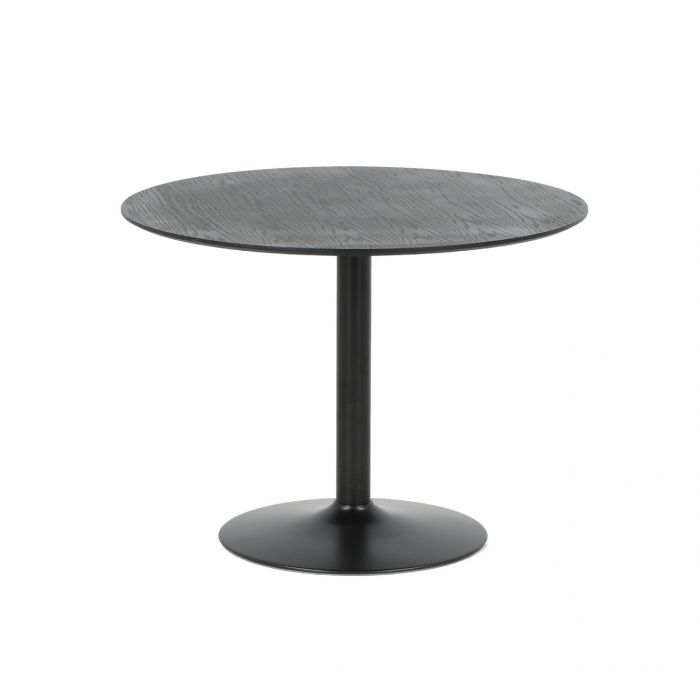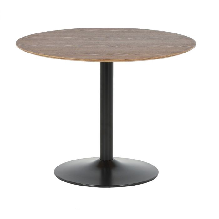 Halkaisijaltaan 100 cm pöydän ympärille mahtuu mukavasti neljä tuolia, mikä tekee siitä ihanteellisen ratkaisun keittiöihin, ruokailutiloihin ja pieniin koteihin. 75 cm pöytäkorkeus sopii yhteen useimpien ruokatuolien kanssa, ja tukeva metallijalka varmistaa vakaan ja kestävän käytön jokaisena päivänä.