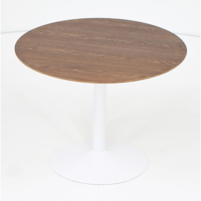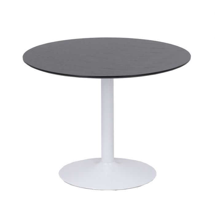 Pyöreä 100 cm halkaisijan pöytä mahdollistaa sujuvan liikkumisen ja toimii täydellisesti myös pienissä tiloissa. Sen ympärille mahtuu mukavasti neljä tuolia, mikä tekee pöydästä ihanteellisen arjen aterioihin, illanistujaisiin ja kompakteihin keittiöihin. Tukeva valkoinen metallijalka varmistaa kestävyyden ja vakaan käyttökokemuksen.