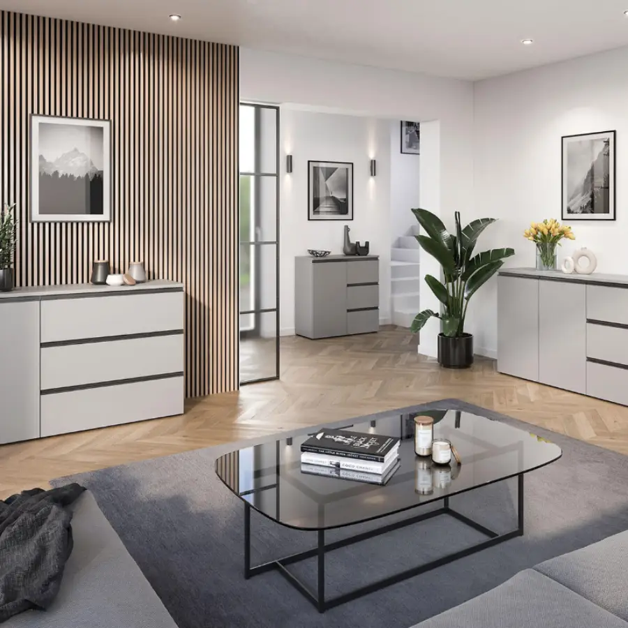 Bastia kaappi 0496 tuo eteiseen tyylikkään ja viimeistellyn ilmeen, joka sopii saumattomasti niin moderniin kuin klassisempaan sisustukseen. Sen neutraali ja ajaton design tekee siitä helposti yhdisteltävän muiden kalusteiden kanssa.