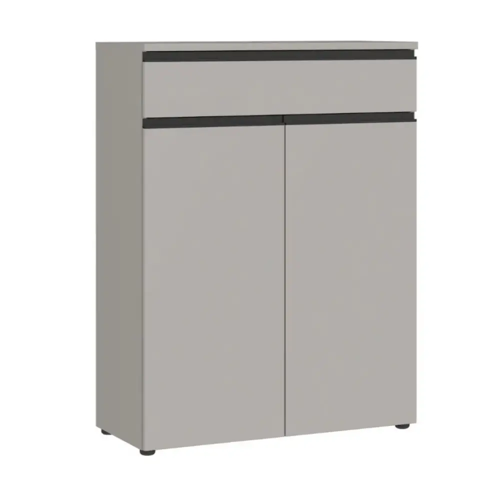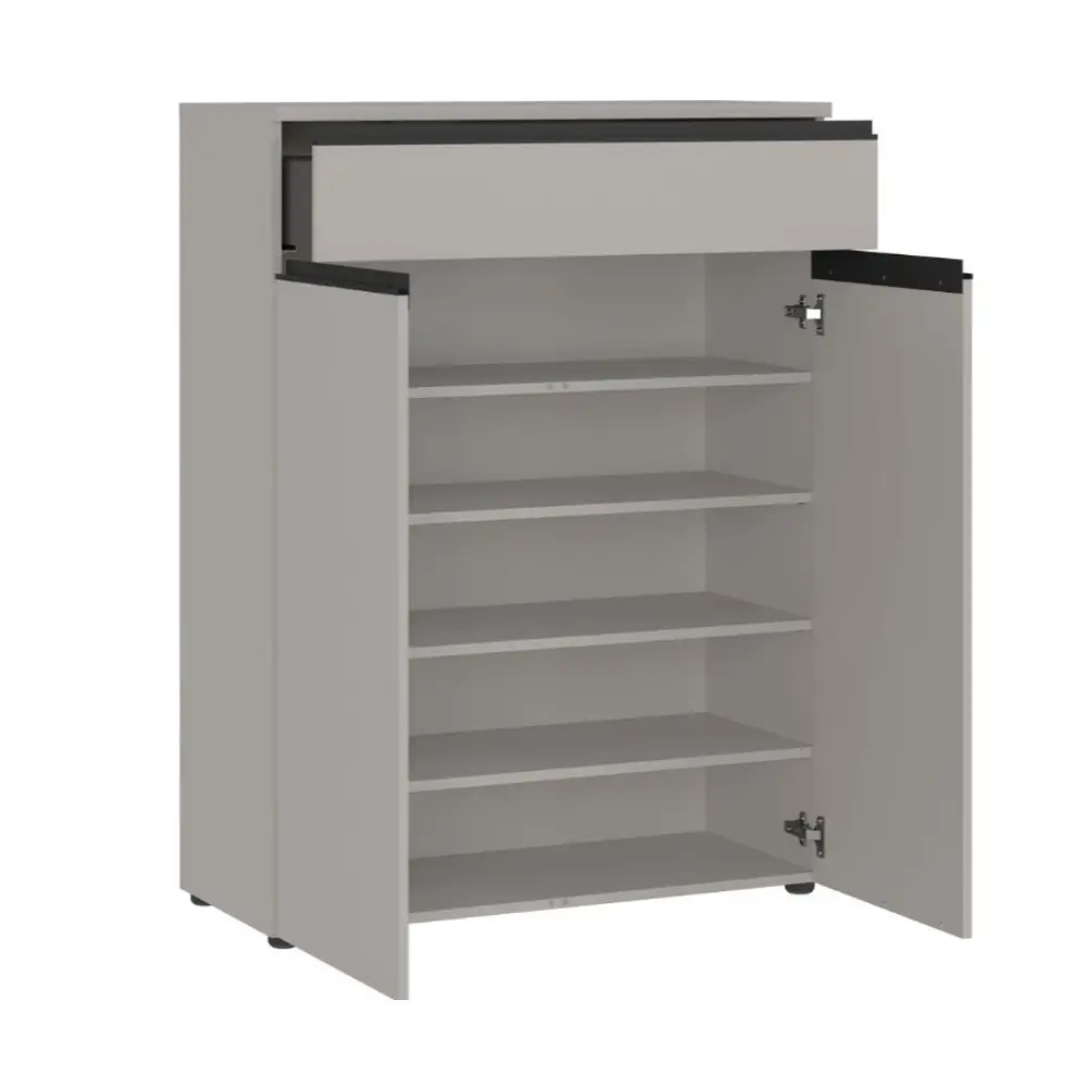 Käytännöllinen vetolaatikko ja kaksi ovellista kaappia tarjoavat runsaasti säilytystilaa kengille, asusteille ja muille arjen tarvikkeille. Korkeussäädettävät hyllyt mahdollistavat tilan muokkaamisen juuri omien tarpeidesi mukaan, pitäen eteisen siistinä ja toimivana.