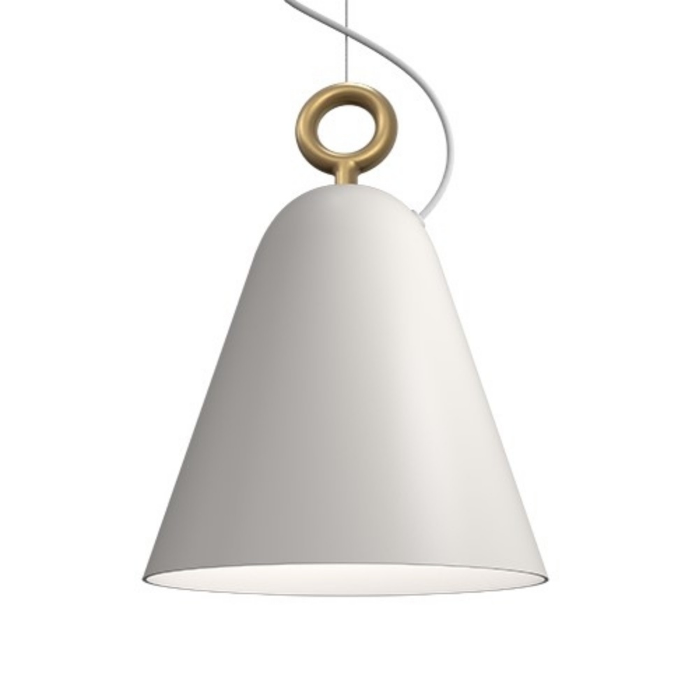 Bella riippuvalaisin on upea metallinen kattovalaisin, jossa moderni muotoilu kohtaa lämpimän messinkisen sisävarjostimen. Valkoinen tai musta ulkopinta luo tyylikkään kontrastin sisäosan kanssa ja tekee valaisimesta näyttävän mutta hillityn katseenvangitsijan ruokailutilaan, olohuoneeseen tai makuuhuoneeseen.