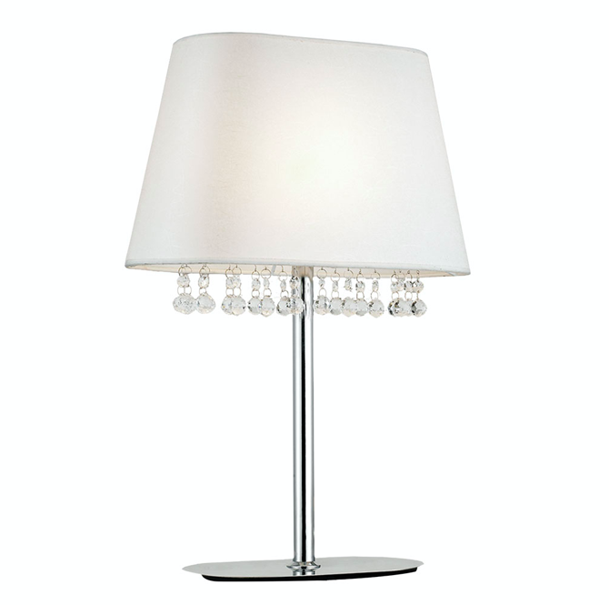Upea Bellini pöytävalaisin tuo sisustukseen hienostunutta glamouria kauniilla kristalliriipuksillaan ja elegantilla ovaalin muotoisella varjostimella. Valkoisen, kromin ja kristallin harmoninen yhdistelmä luo arvokkaan ja ajattoman ilmeen, joka sopii täydellisesti olohuoneeseen, makuuhuoneeseen tai edustaviin tiloihin.