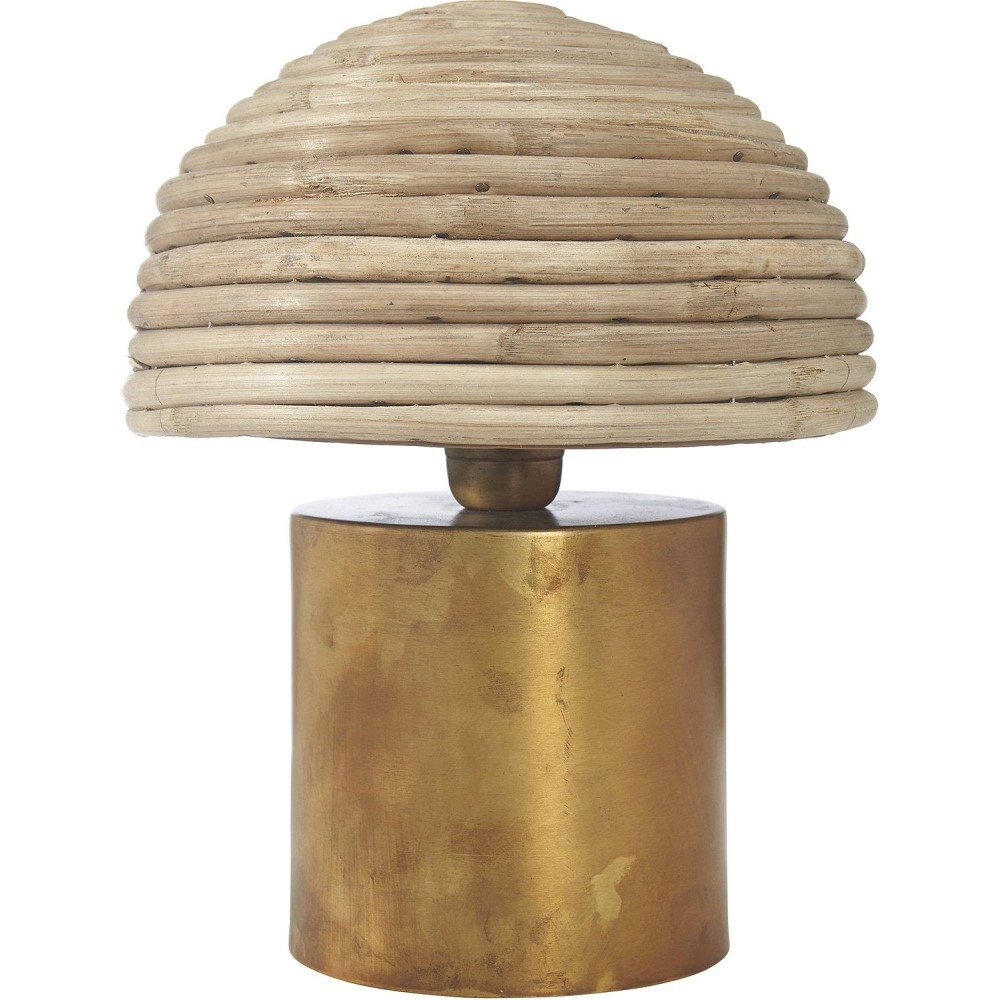 Käsin tehty Bess pöytävalaisin yhdistää aidot luonnonmateriaalit ja ajattoman muotoilun tyylikkääksi kokonaisuudeksi. Luonnonvaalea rottinkivarjostin suodattaa valon pehmeästi ja luo tilaan lämpimän, rauhallisen tunnelman, kun taas messingin sävyinen metallijalusta tuo valaisimeen eleganttia kontrastia. Tämä pöytävalaisin on täydellinen valinta olohuoneeseen, makuuhuoneeseen tai sivupöydälle tunnelmavalaistukseksi.