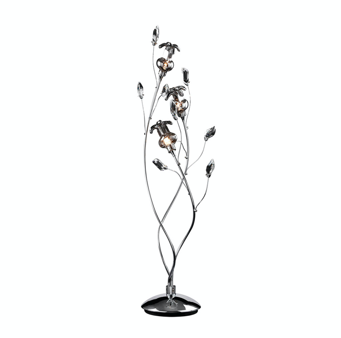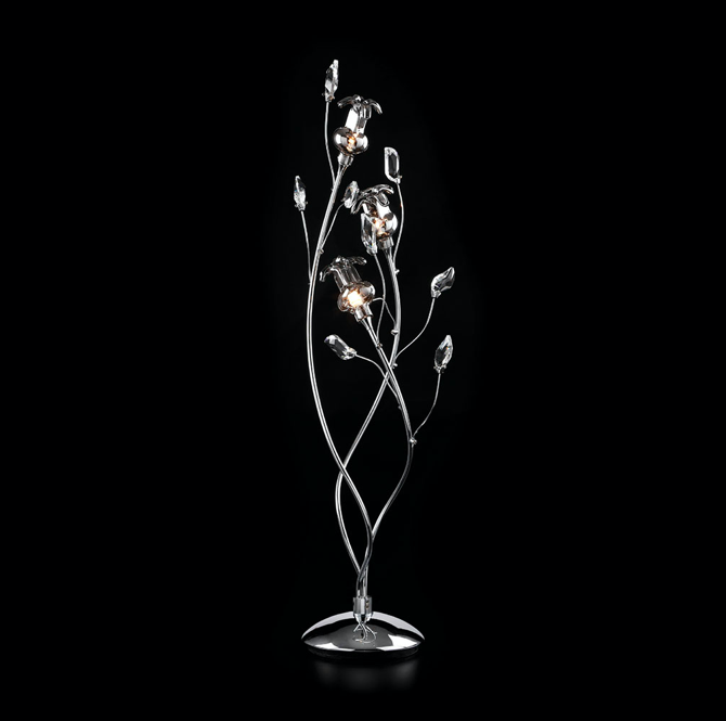 Näyttävä Biella kristalli pöytävalaisin hurmaa upeasti muotoilluilla kristalliterälehdillä ja kukkamaisilla yksityiskohdilla, jotka luovat valaisimelle veistoksellisen ja ylellisen ilmeen. Kromin ja kirkkaan kristallin yhdistelmä heijastaa valoa kauniisti ja tuo sisustukseen glamouria sekä näyttävyyttä.