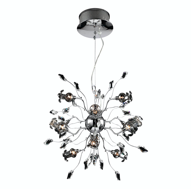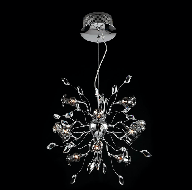 Näyttävä Biella kristallivalaisin jossa upeasti muotoillut kristalliterälehdet ja kukat. Valaisimen korkeutta saa säädettyä 3 metrin vaijerilla.