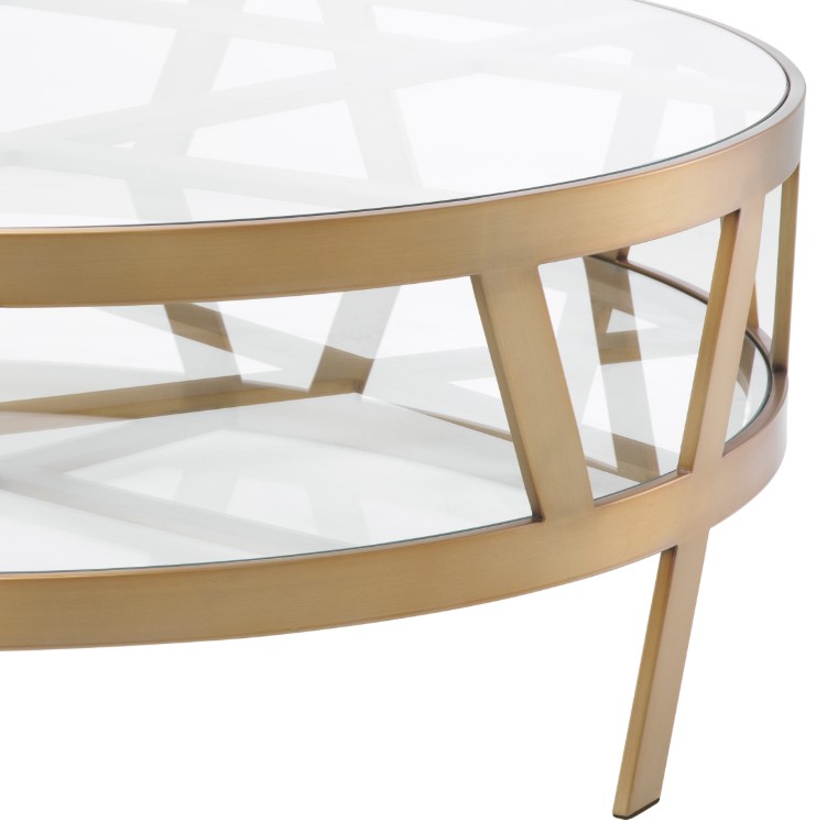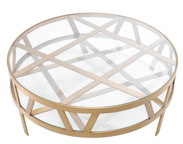 Harjattu messinkipinta luo lämpimän ja elegantin tunnelman, kun taas pöydän ainutlaatuinen, satunnainen runkorakenne erottuu edukseen kirkkaan lasikannen läpi. Tämä yhdistelmä tekee pöydästä visuaalisesti kiinnostavan ja antaa sille modernin, lähes veistoksellisen ilmeen.