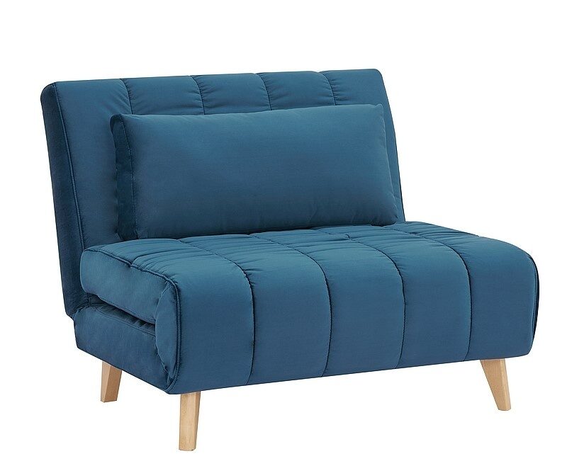Valittavana on harmaa tai turkoosi sametti sekä harmaa kangasverhoilu, joita täydentävät massiivipuiset pyökkijalat. Kompakti mitoitus (103 × 94 × 82 cm) tekee vuodetuolista erinomaisen vaihtoehdon pieniin tiloihin, ja avattuna 103 × 191 cm vuode tarjoaa yllättävän tilavan nukkumapaikan.