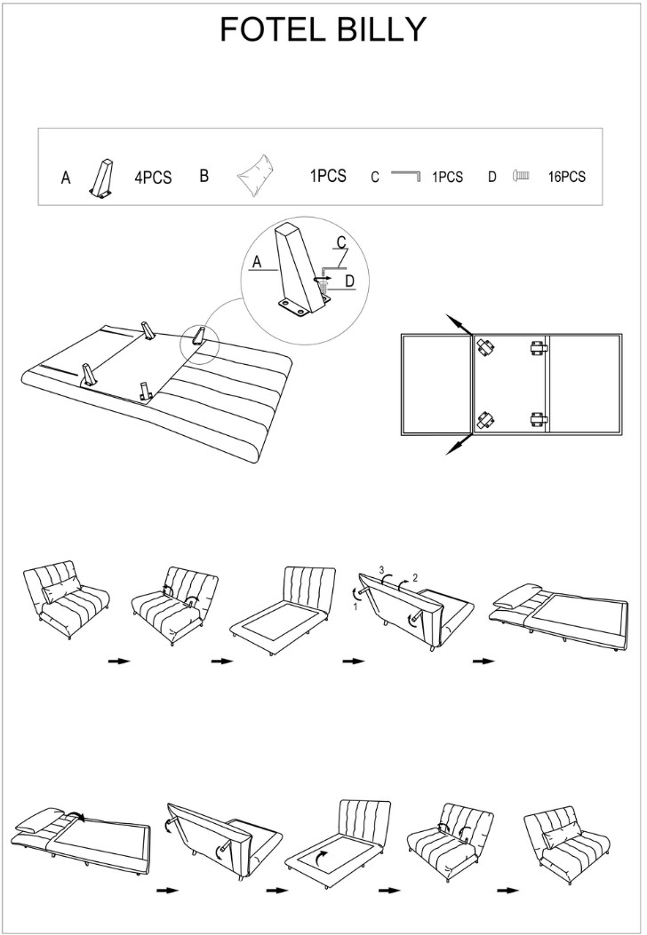 Toimitus osissa tekee kokoamisesta vaivatonta, ja tuolin muuttaminen sängyksi onnistuu hetkessä ilman monimutkaisia mekanismeja – täydellinen ratkaisu vieraille tai arjen joustaviin tarpeisiin.