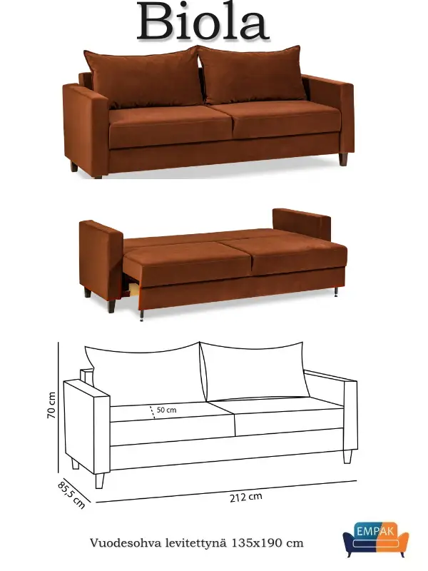 Biola Vuodesohva vuodevaatelaatikolla