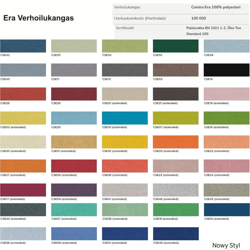 Laadukas verhoilu ja useita värivaihtoehtoja