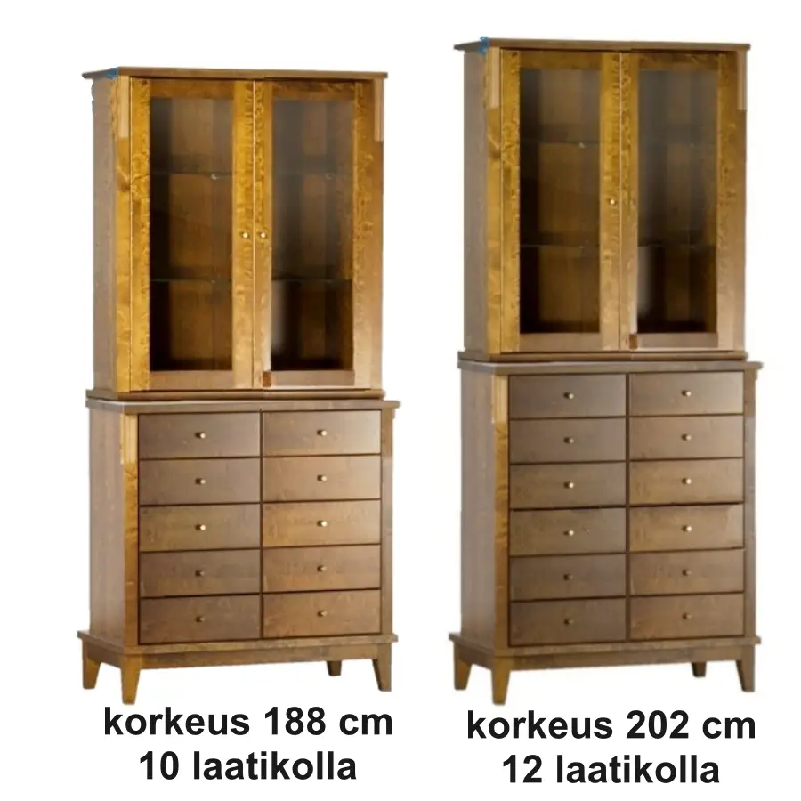 Voit valita kaapin kahdessa eri korkeudessa sekä 10 tai 12 laatikolla. Ulkonäköön on tarjolla kaksi tyylikästä vaihtoehtoa: