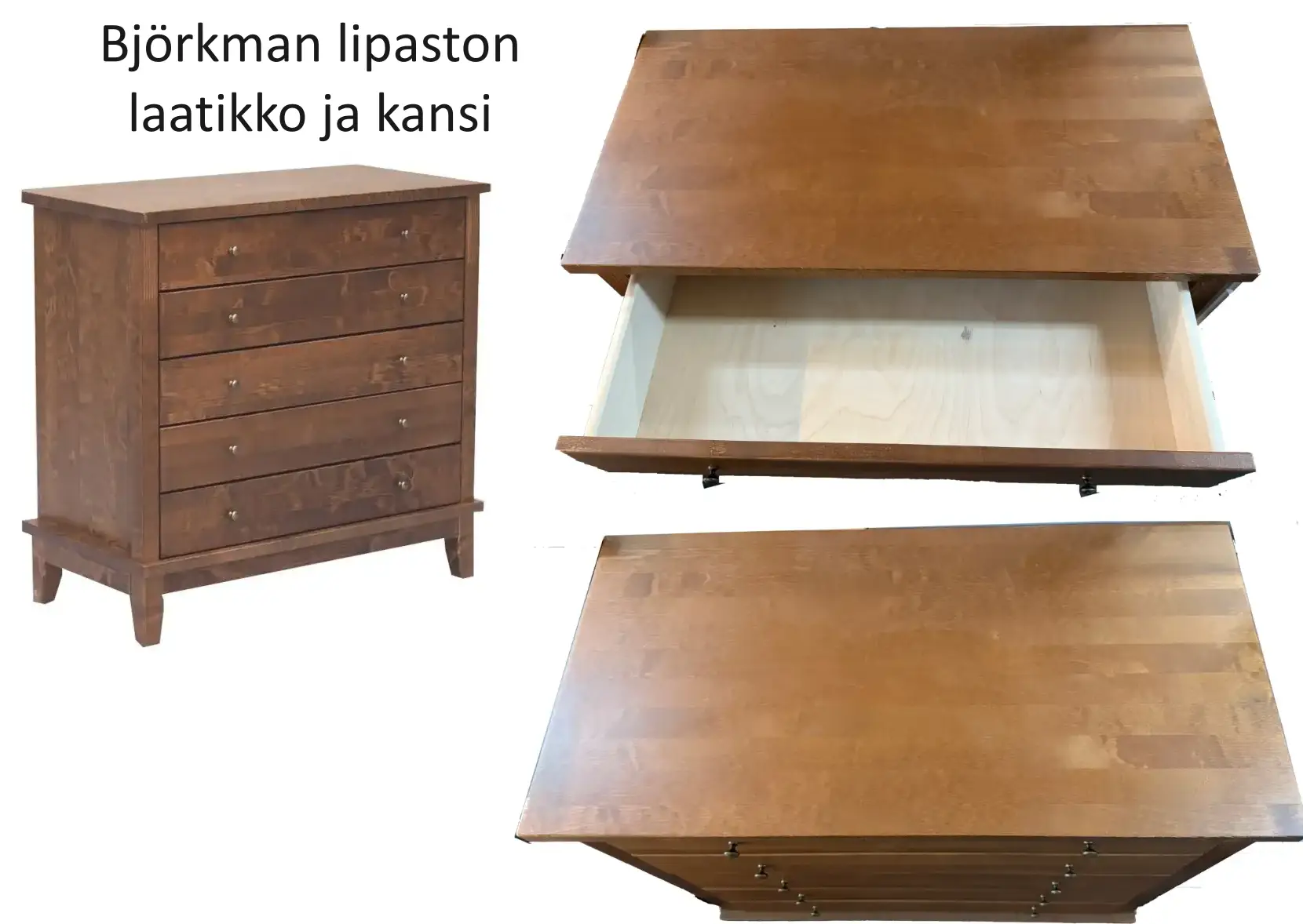 Björkman-lipasto on ajaton, kestävä ja laadukas kotimainen huonekalu, joka valmistetaan massiivikoivusta. Viisi samankorkuista, sileää laatikkoa tarjoavat runsaasti säilytystilaa ja pitävät kodin järjestyksessä.