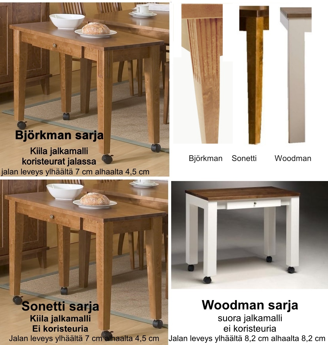 Björkman-ruokapöytä on kotimainen huippulaadukas ja ajattoman tyylikäs pöytä, joka valmistetaan kestävästä massiivikoivusta. Leveyden voit valita 100 cm tai 110 cm mukaan, ja lisäksi pöytä on saatavana yksivärisenä tai kaksivärisenä, jolloin kansi ja jalat voivat erottua tyylikkäästi eri sävyillä. Halutessasi pöytä voidaan valmistaa myös erikoismittaisena, jotta se sopii täydellisesti juuri sinun kotiisi.