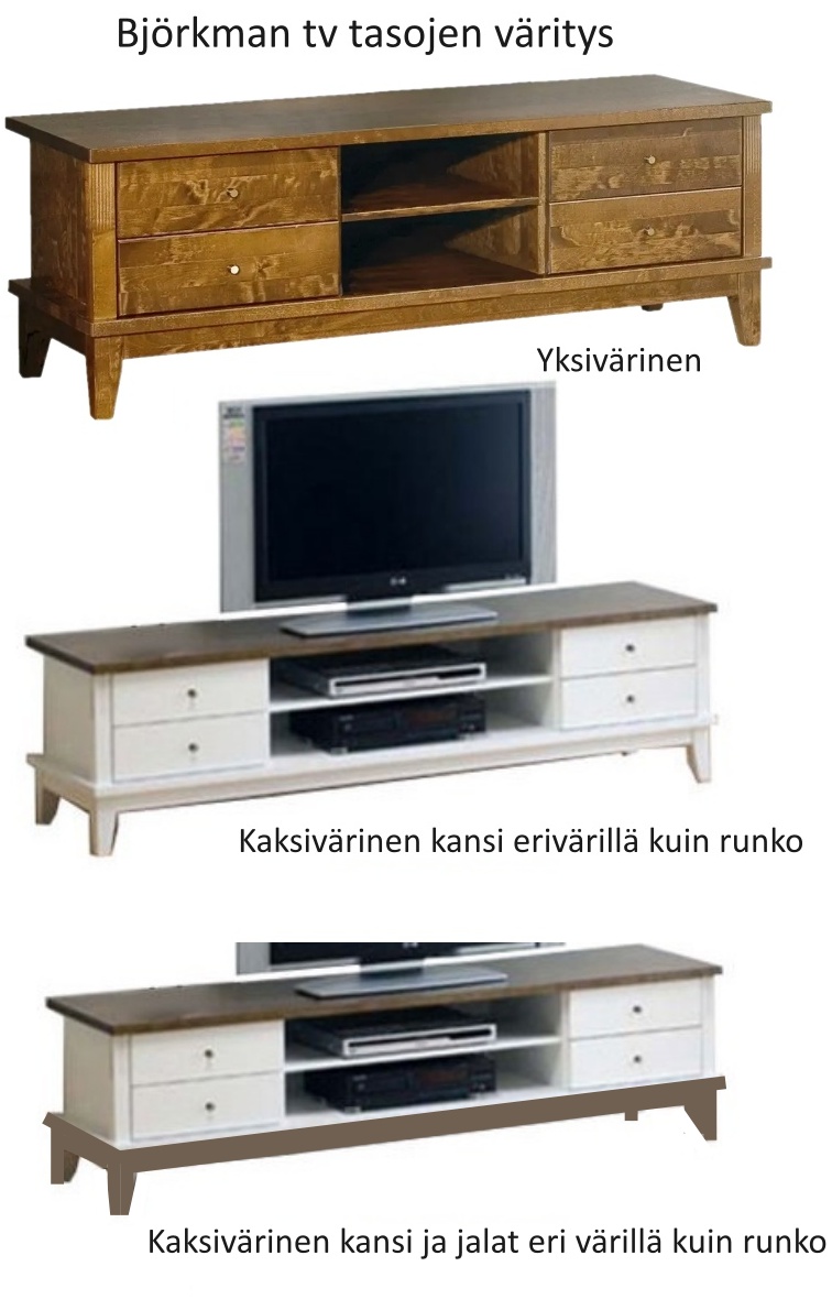 Osana laajaa Björkman-sarjaa tämä tv-taso sopii täydellisesti muun kalustuksen rinnalle. Yksivärisenä tai kaksivärisenä tilattava tv-taso voidaan räätälöidä juuri sinun tyyliisi sopivaksi. Kotimainen ja muuntautumiskykyinen Björkman tarjoaa kauneutta ja toimivuutta vuosiksi eteenpäin.
