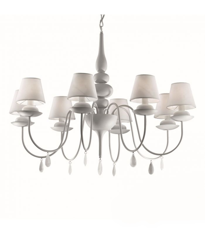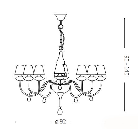 Klassinen kuusihaarainen tai kahdeksanhaarainen Blanche kruunuvalaisin tuo tilaan arvokasta ja hillittyä eleganssia. Metallirunko ja kankaalla päällystetty PVC-kalvosuoja luovat pehmeän ja viimeistellyn ilmeen, joka sopii täydellisesti klassiseen, romanttiseen tai moderniin sisustukseen kontrastia tuomaan.