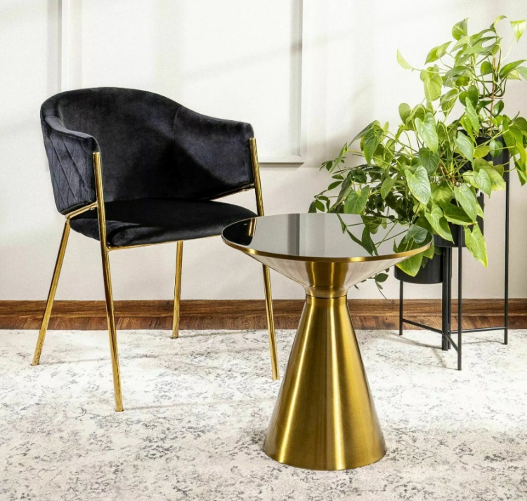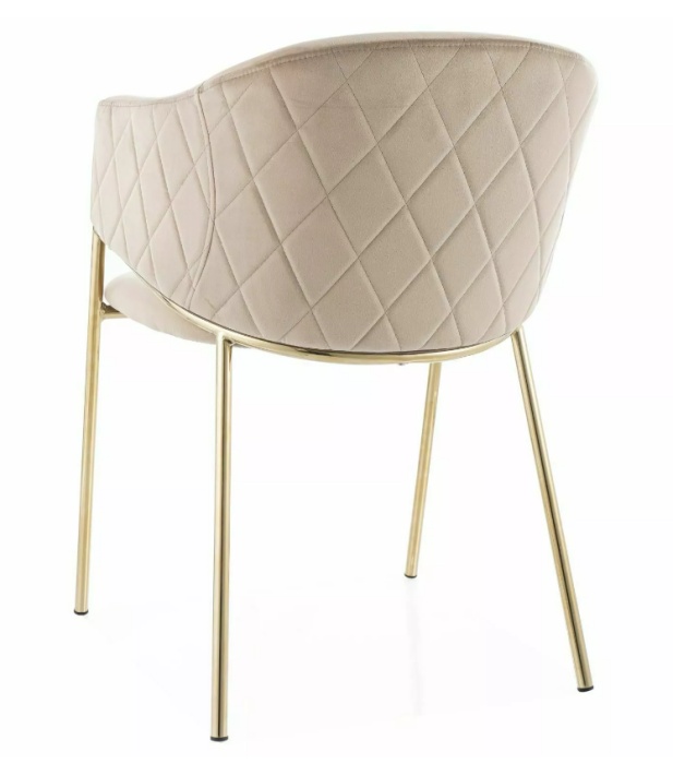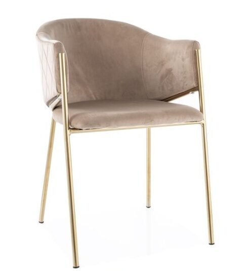 Bono-tuoli tuo ruokailutilaasi ylellistä ilmettä samettikangasverhoilun ja kullanvärisen metallirungon yhdistelmällä, jonka pehmeä tekstuuri ja tyylikkäät yksityiskohdat tekevät siitä näyttävän osan sisustusta.