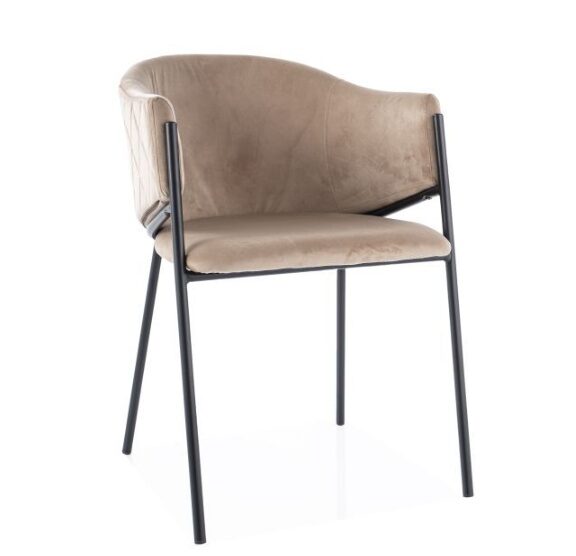 Bono-tuoli yhdistää samettikankaan pehmeyden ja mustan metallirungon modernin ryhdin, tuoden ajattoman ja elegantin lisän mihin tahansa ruokailutilaan. Sen hillitty muotoilu sulautuu saumattomasti erilaisiin sisustustyyleihin.