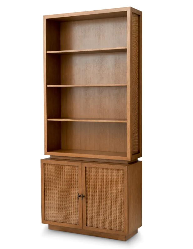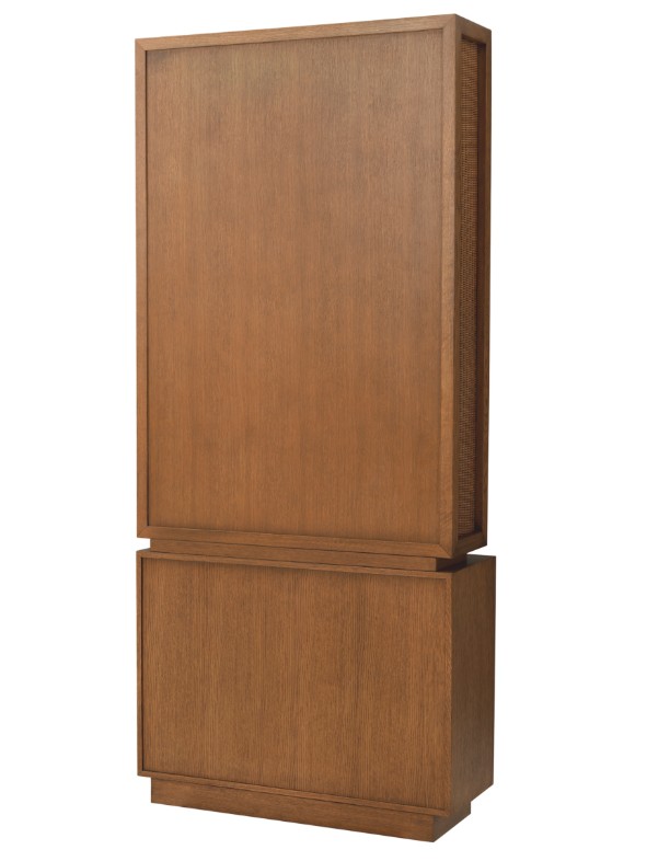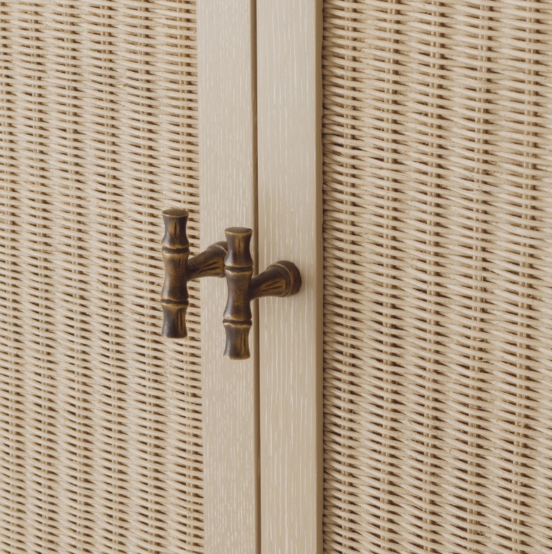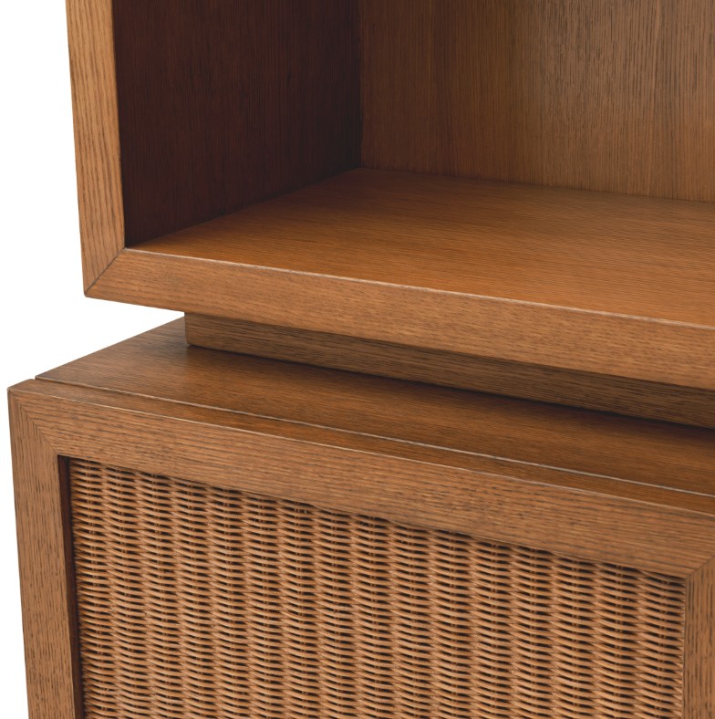 Pesty tammiviilu yhdistyy kevyesti kudottuun rottinkiin, tuoden pintaan elävyyttä ja hienovaraista kontrastia. Tämä materiaalien yhdistelmä korostaa kaapin luonnollista kauneutta ja tekee siitä ainutlaatuisen sisustuselementin.