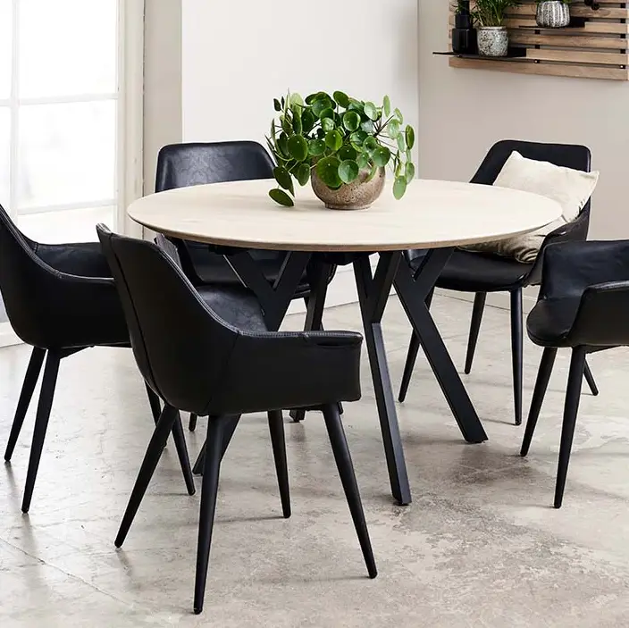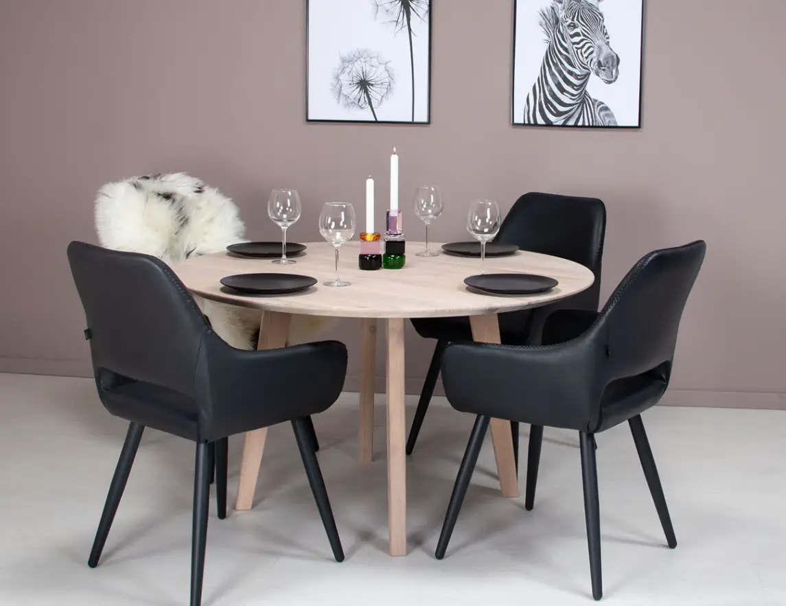 Boston pyöreä ruokapöytä B4 jaloilla hurmaa selkeällä ja modernilla ilmeellään, jossa yhdistyvät pyöreä muoto, 3 cm paksu massiivipuinen kansi ja tyylikäs viistoreuna. Voit halutessasi vaihtaa pöydän kannen reunan mallia lisähinnasta joka tuo samalla 2 viikkoa lisää toimitusaikaa tilaukselle. Mustat B4-jalat tuovat pöytään ryhdikkyyttä ja kontrastia, ja halutessasi voit valita myös muita jalkavaihtoehtoja lisähintaan. Pyöreä muoto tekee pöydästä kutsuvan ja helposti lähestyttävän ruokailutilan keskipisteen.