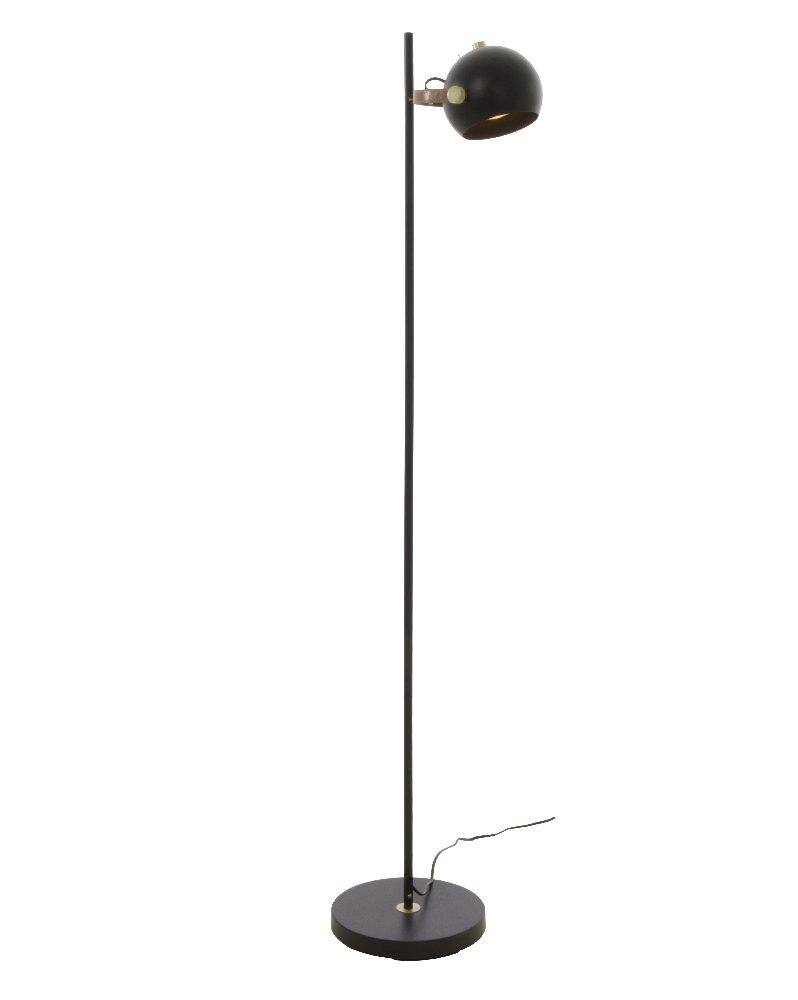 Kestävä metallirunko, tekonahkaiset yksityiskohdat ja metallinen kupu takaavat viimeistellyn ja pitkäikäisen kokonaisuuden. Siro mutta ryhdikäs 147,5 cm korkea rakenne sekä GU10-kanta tarjoavat joustavuutta valaistuksen valintaan ja sijoitteluun.
