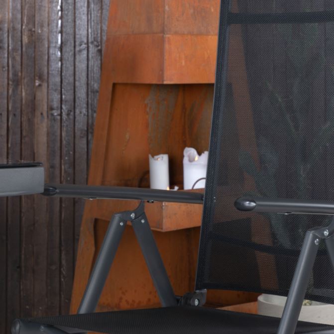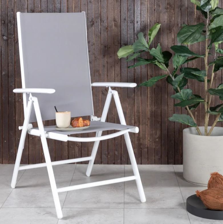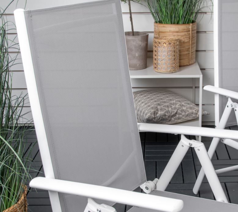 Break on ajaton tuoli jonka voit yhdistää moneen ruokapöytään. Tuoli on kokoontaittuva ja selkänoja on säädettävissä. Runko materiaalia ja istuin Textilene kangasta. Textilene on synteettinen kangas, joka on valmistettu PVC-käsitellystä polyesteristä. Materiaali on vedenpitävä ja UV-käsitelty.