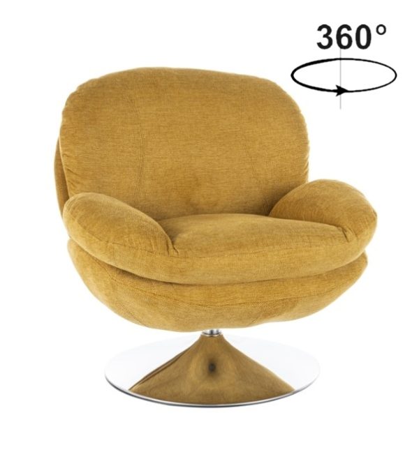 • Tyylikäs Brigitte nojatuoli, joka tuo näyttävyyttä kotisi sisustukseen. Tuolissa on pehmeä istuin sekä mekansimi jonka avulla se kääntyy 360 astetta.