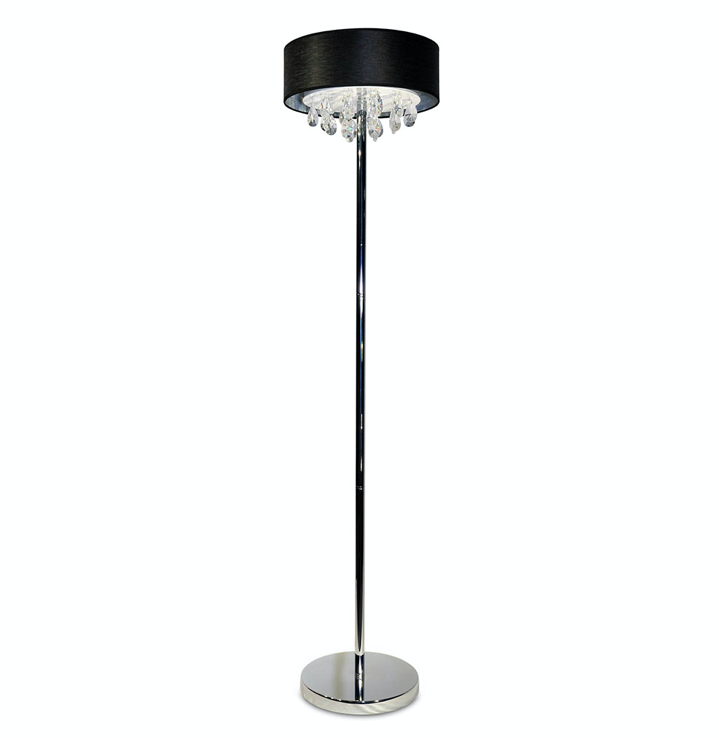 Brilliant lattiavalaisin on upea ja elegantti lattiavalaisin, jossa kiiltävät kristallit ja kangasvarjostin luovat pehmeän ja ylellisen valaistuksen sisustukseen. Kaksi E14-polttimoa, laadukkaat materiaalit sekä mustan ja kromin ajaton yhdistelmä tekevät siitä näyttävän ja monikäyttöisen valinnan kotiin.