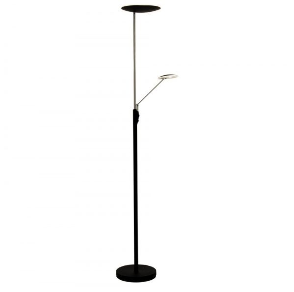 Moderni kaksiosainen Cadiz-2 lattiavalaisin on tyylikäs ja käytännöllinen valinta nykyaikaiseen kotiin. Selkeälinjainen metallirakenne ja harkitut värivaihtoehdot – musta/messinki, musta/teräs ja teräs – tekevät valaisimesta helposti yhdistettävän erilaisiin sisustustyyleihin olohuoneesta työtilaan.