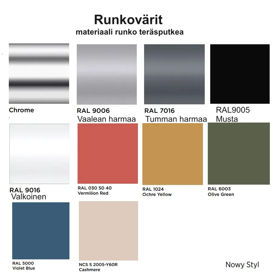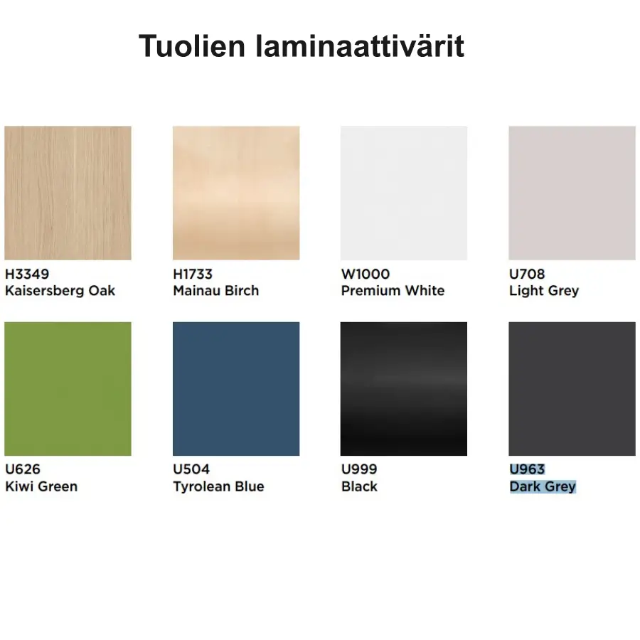 | 50 cm | 56 cm | 85.5 cm | cm | cm | cm | cm | 45 cm | 40 cm | 40 cm | cm | cm | cm | cm | cm | cm | cm | cm | cm | cm | cm | cm | cm | cm | cm | cm | cm | cm | Metalli, Viilutettu pinta | Pinottavuus max 4 tuolia | Istuin laminoitu, pyökki väri viilutettu | Harmaa, Kromi, Musta, Valkoinen | cm | Takuu 3 vuotta | Tilaustuote | Toimitus osina | kg | cm | cm | cm |