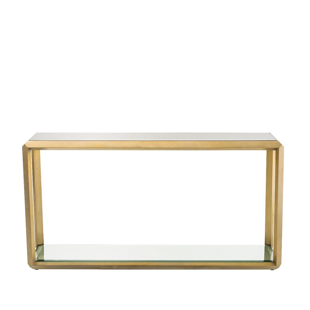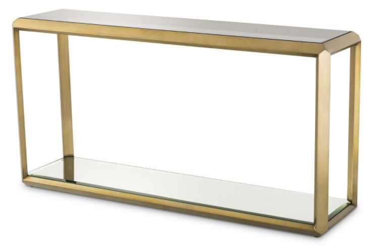 Callum-konsolipöytä tuo kotiisi 70-luvun ikonisen ilmeen, jossa retrohenkisyys ja moderni minimalismi kohtaavat harmonisesti. Harjattu messinki, savulasi ja peililasi muodostavat näyttävän kokonaisuuden, joka antaa tilaan ylellisen ja persoonallisen tunnelman.