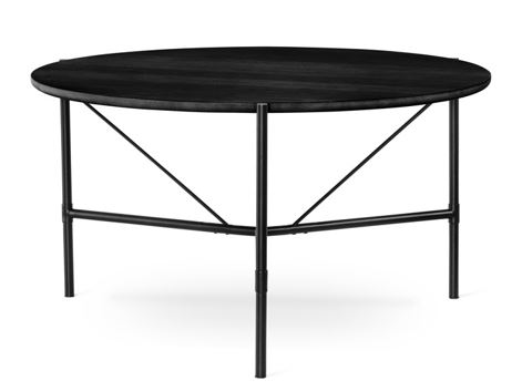 Ruokapöydän kansi on valmistettu mustasta tammivaneerista, joka tuo sisustukseen syvyyttä ja arvokasta ilmettä. Tukevat metallijalat viimeistelevät modernin kokonaisuuden ja takaavat vakaan rakenteen arjen käyttöön.