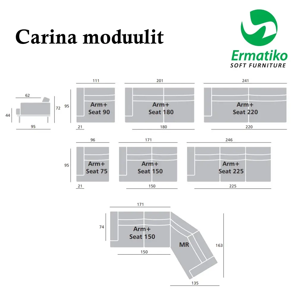 | 117 cm | 95 cm | 72 cm | cm | cm | cm | cm | 44 cm | 180 cm | 62 cm | 18 cm | cm | cm | cm | cm | cm | cm | 21 cm | Jämäkkä selkänojatyyny, Vaahtomuovi HR25 | cm | cm | cm | cm | cm | cm | cm | cm | cm | cm | Aracon kangas, Hygge kangas, Monolith kangas, Orinoco kangas | Jalat massiivipuuta, Jalat metallia, Massiivipuu, Vaneri | Ermatiko värit | cm | Täystakuu tuotteelle 2 vuotta | Tilaustuote | Toimitus koottuna - jalkojen kiinnitys | kg | Viro | cm | cm | cm |