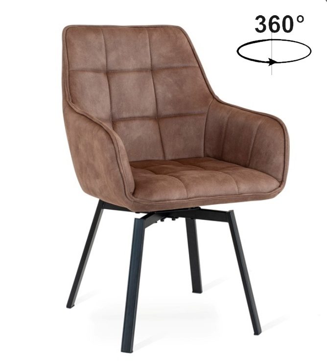 Tuolin kääntyvä 360 asteen mekanismi lisää käyttömukavuutta ja tekee tuolista erittäin käytännöllisen ruokapöydän ääressä. Ruskea verhoilu on valmistettu pehmeästä ja helppohoitoisesta mikrokuitukankaasta, joka tuntuu miellyttävältä ja kestää hyvin päivittäistä käyttöä.