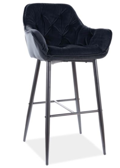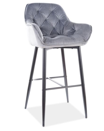 Cherry-baarituoli yhdistää ylellisen samettikankaan ja kauniisti muotoillun selkänojan, tuoden modernia eleganssia niin kotiin kuin ravintolamaisiin tiloihin. Musta tai harmaa verhoilu täydentää harmonisesti mustia metallijalkoja.