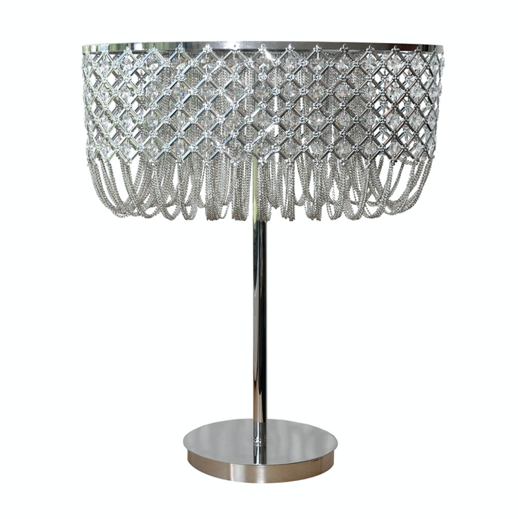 Upea ja näyttävä Chesterfield pöytävalaisin hurmaa elegantilla kokonaisuudellaan, jossa hopeanväriset ketjut ja säihkyvät kristallit luovat arvokkaan ja klassisen ilmeen. Mattahopean, kromin ja kristallin yhdistelmä tekee valaisimesta katseenvangitsijan, joka sopii täydellisesti olohuoneeseen, makuuhuoneeseen tai edustaviin sisätiloihin.