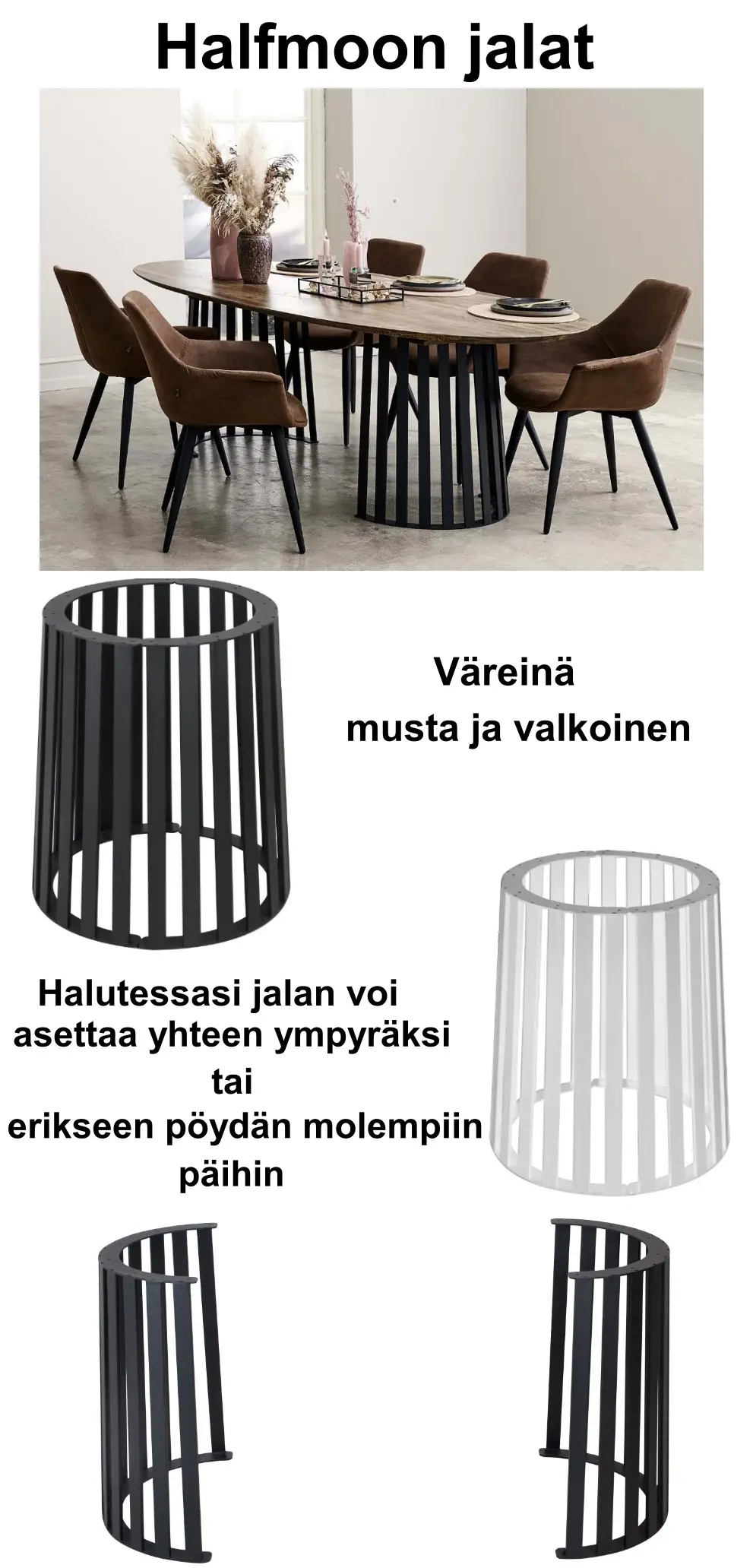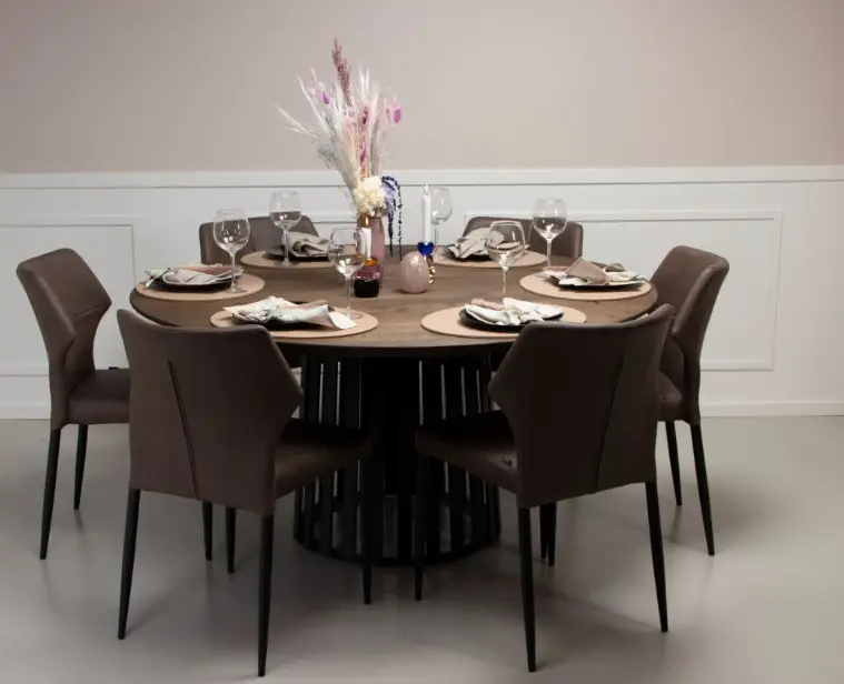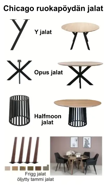Chicago ruokailuryhmä muodostaa elegantin ja kutsuvan kokonaisuuden, joka koostuu pyöreästä Chicago-ruokapöydästä mustilla Y-jaloilla sekä kuudesta tyylikkäästä Runa-tuolista. Pyöreä muoto lisää seurustelun tuntua ja tekee ruokailutilasta harmonisen, kun taas mustat jalat tuovat kokonaisuuteen modernia ryhtiä.