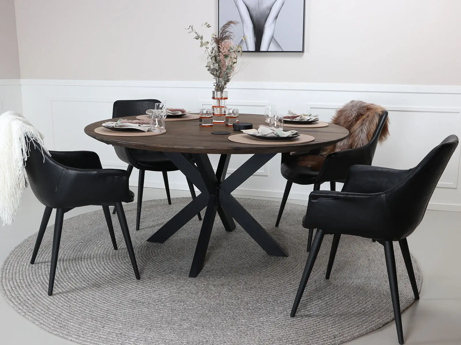 Chicago ruokapöytä mustilla Y-jaloilla on moderni ja elegantti katseenvangitsija, joka tuo ruokailutilaan ryhdikkään mutta samalla kutsuvan ilmeen. Pyöreä muoto tekee pöydästä sosiaalisen ja helposti lähestyttävän, ja mustat Y-jalat korostavat kokonaisuuden modernia designia.