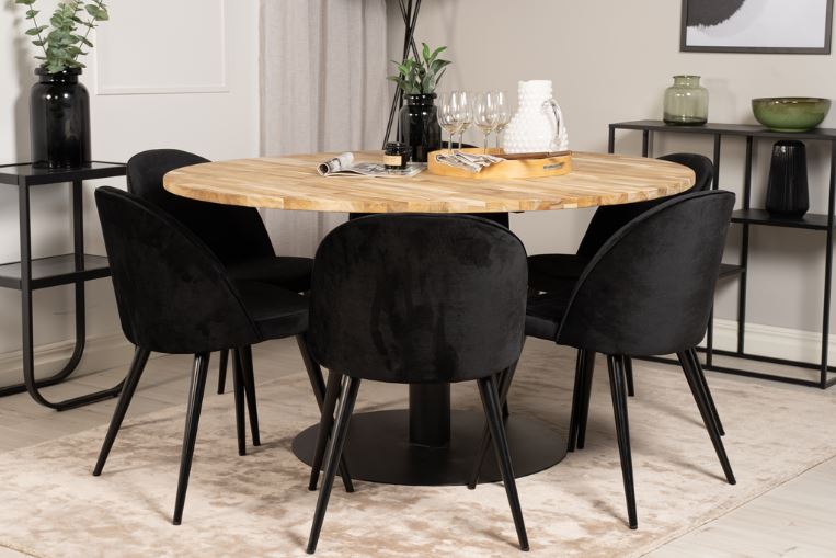 - Moderni pyöreä Cirebon-sarjan ruokapöytä kauniista tiikkipuusta ja lieriömäisellä rungolla. Tiikkihuonekalujen päivittäiseen puhdistukseen sisätiloissa kuiva liina on paras ratkaisu. Käytä mahdollisiin tahroihin kosteaa liinaa ja kuivaa välittömästi. Kuvan tuolit ovat erikseen tilattavissa. Toimitus osissa.