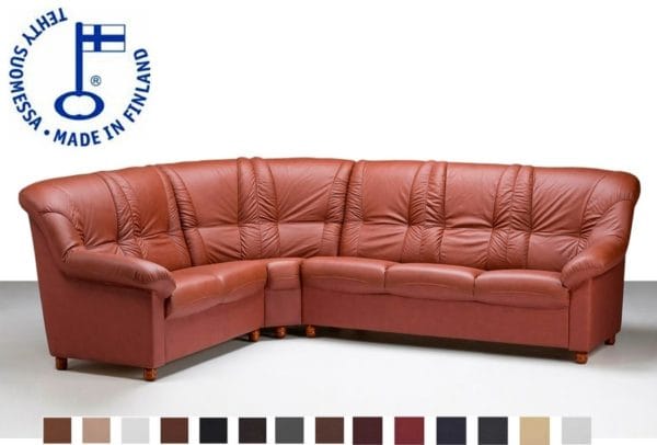 - Sohva on verhoiltu laadukkaalla ja kestävällä amalfi nahalla ja keinonahalla. Halutessasi jonkun muun verhoilun tai muilla kokoonpanoilla ota yhteyttä asiakaspalveluumme. Toimitus muuten koottuna vain jalat pitää laittaa paikalleen.