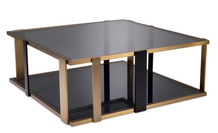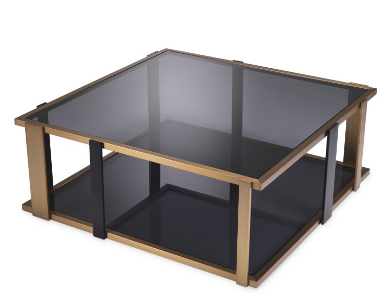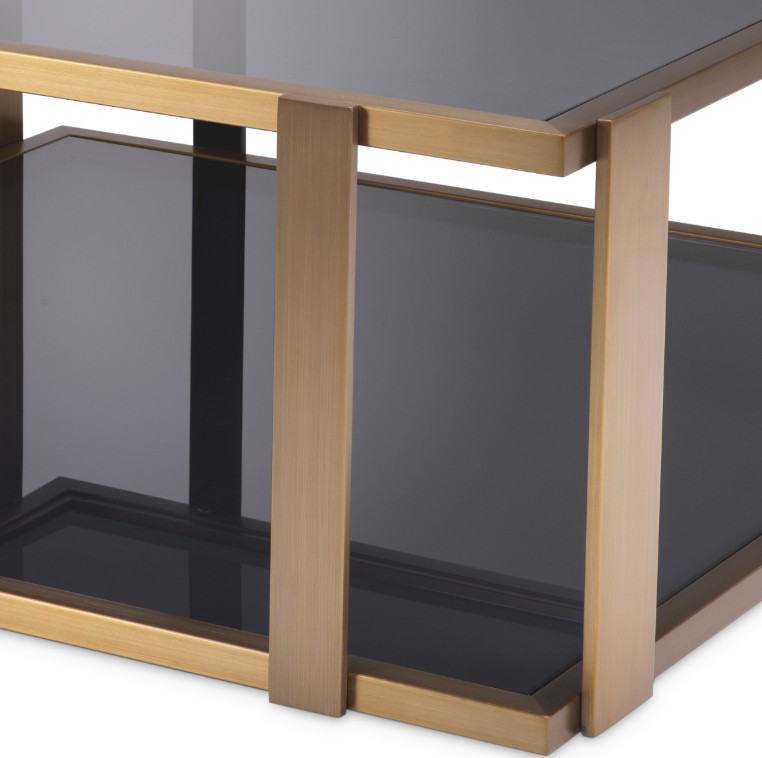 Harjatun messingin, mustan viimeistelyn ja savulasisen kannen yhdistelmä luo upean tasapainon eri materiaalien ja tekstuurien välille. Tämä kontrasti tuo pöytään syvyyttä ja modernia eleganssia, tehden siitä helposti yhdisteltävän erilaisiin sisustustyyleihin.