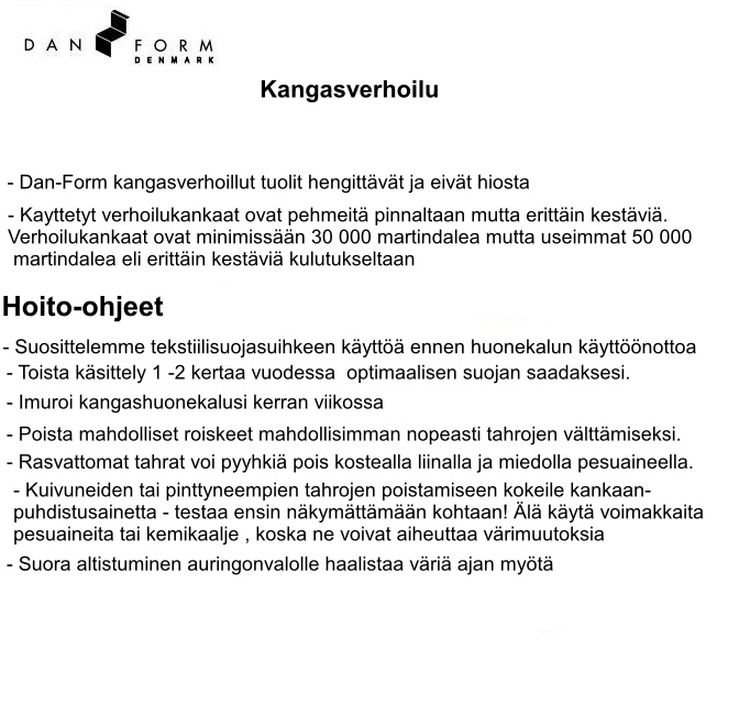 Osa Danformin korkealaatuista tuotesarjaa, Cloud-tuoli edustaa modernia tanskalaista muotoilua ja huolellisesti viimeisteltyjä yksityiskohtia. Tuoli toimitetaan kätevästi osina, ja kokoaminen on helppoa – vain jalat kiinnitetään. Mukana tuleva 2 vuoden takuu varmistaa luotettavan ja pitkäikäisen käytön.