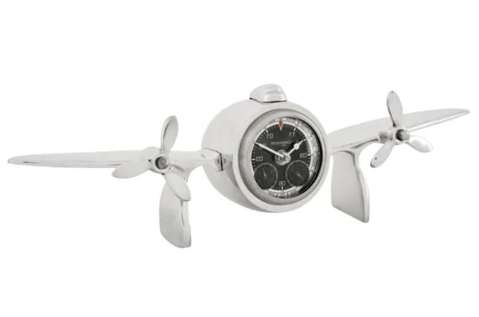 Commander Clock tuo kotiisi klassisten potkurisuihkukoneiden ikonisen estetiikan, tehden siitä täydellisen lisän ilmailuteemaisen sisustuksen ystäville. Korkeusmittaria muistuttava kellotaulu ja kiillotettu nikkelirunko luovat aidon, elegantin ja erottuvan kokonaisuuden.
