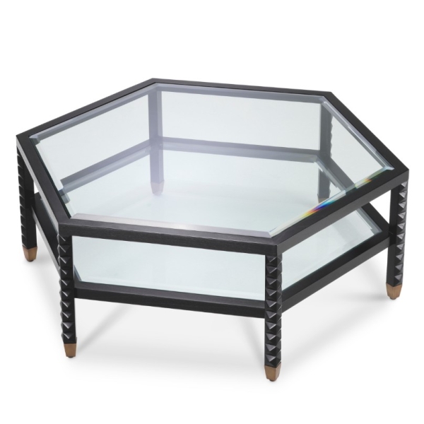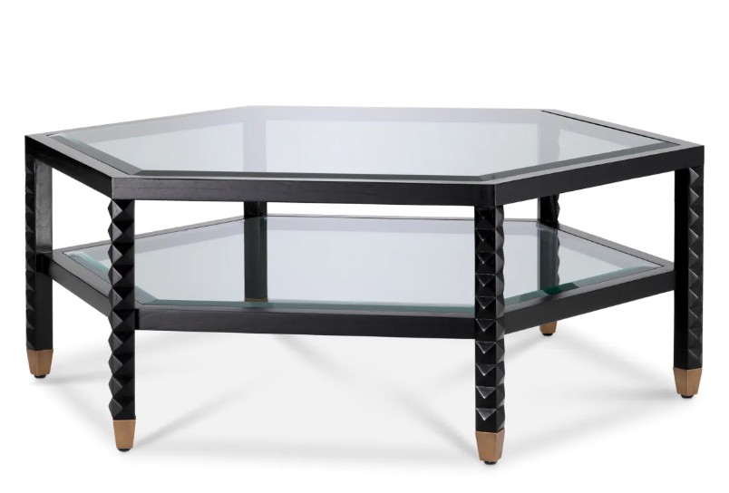 Cornelius on elegantti kaksitasoinen sohvapöytä, jossa musta runko, niitatut jalat ja antiikkimessinkiset yksityiskohdat luovat ylellisen kokonaisuuden. Tämä lasitasoinen design-sohvapöytä tuo olohuoneeseen ajattoman tyylikkään ja hienostuneen ilmeen.