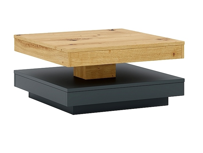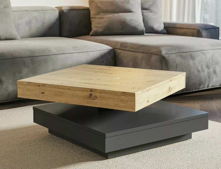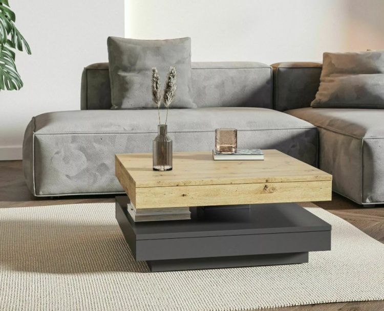 Cotto-sohvapöydän 360° kääntyvä päälliosa antaa mahdollisuuden muokata pöydän asettelua juuri omaan tilaasi sopivaksi, tuoden joustavuutta ja helppokäyttöisyyttä arkeen.