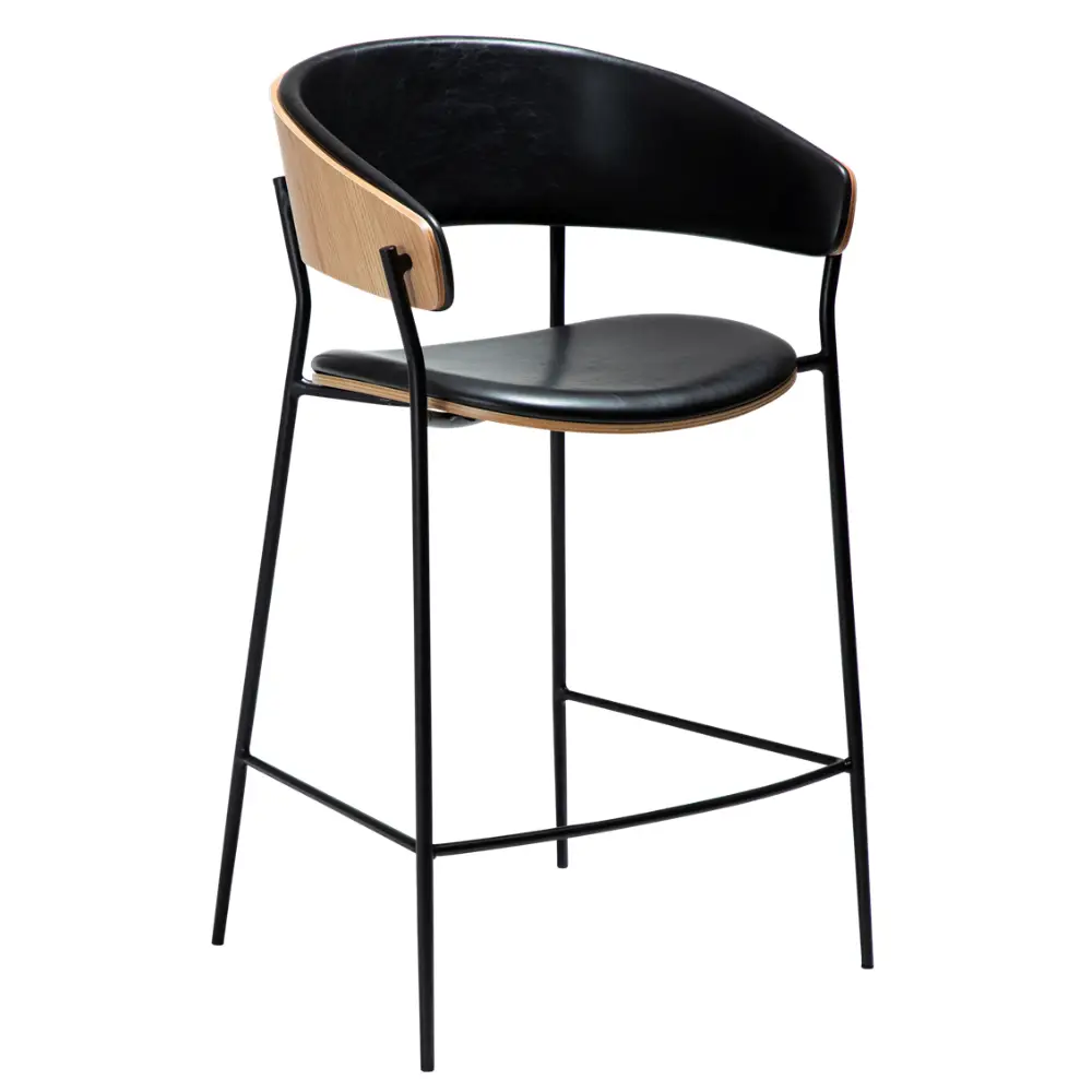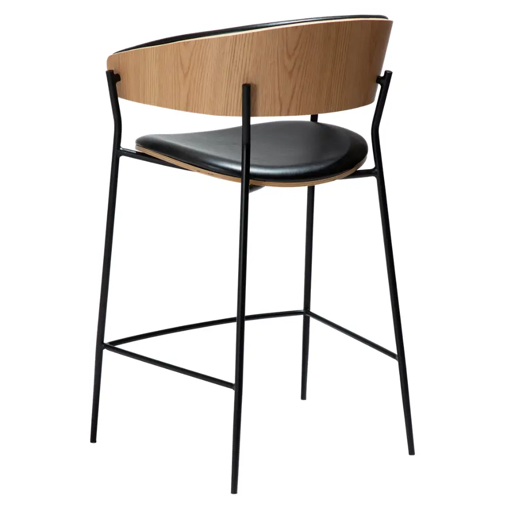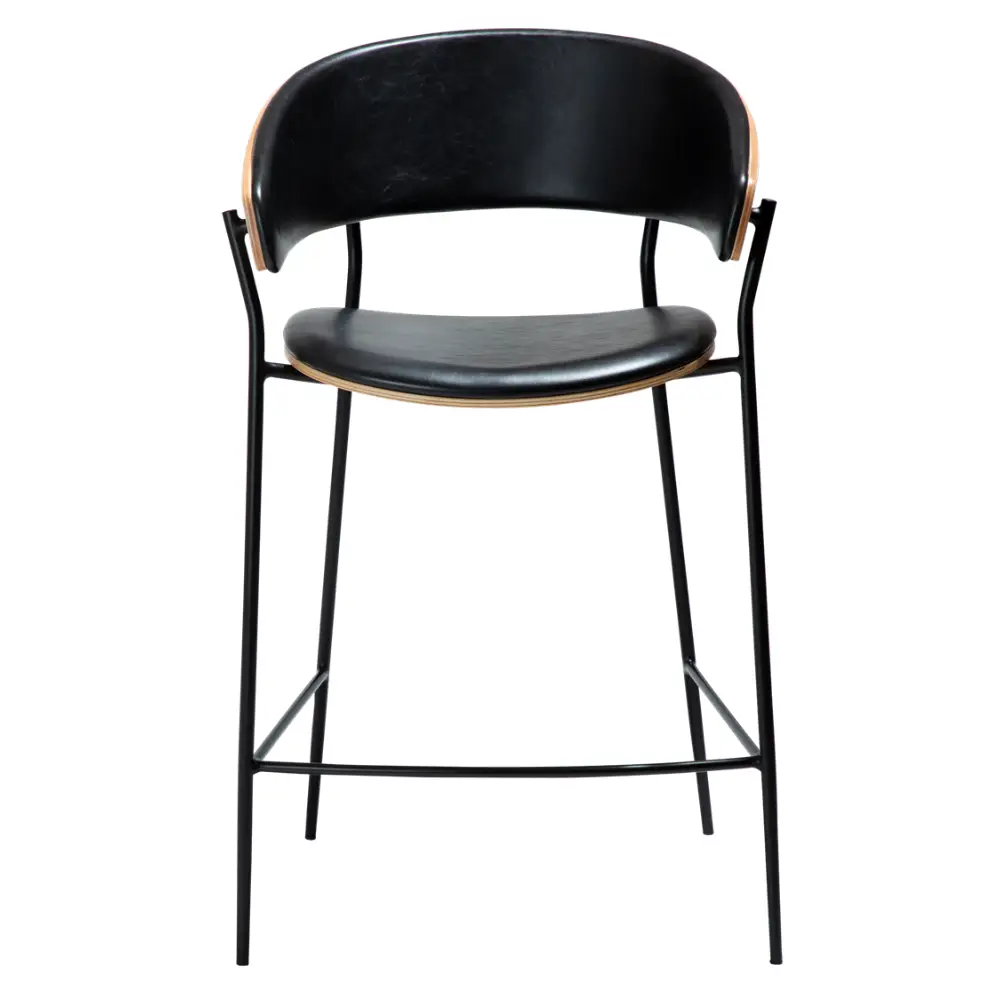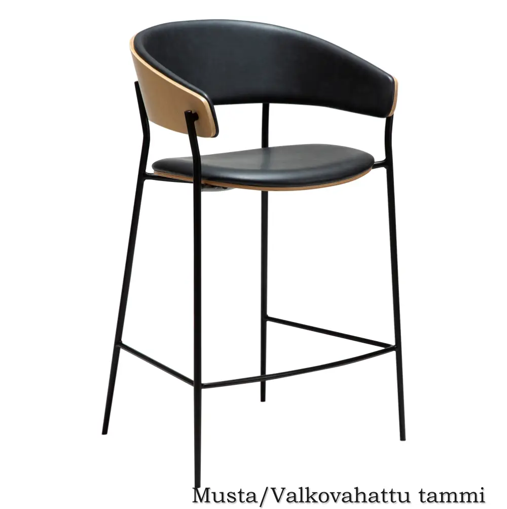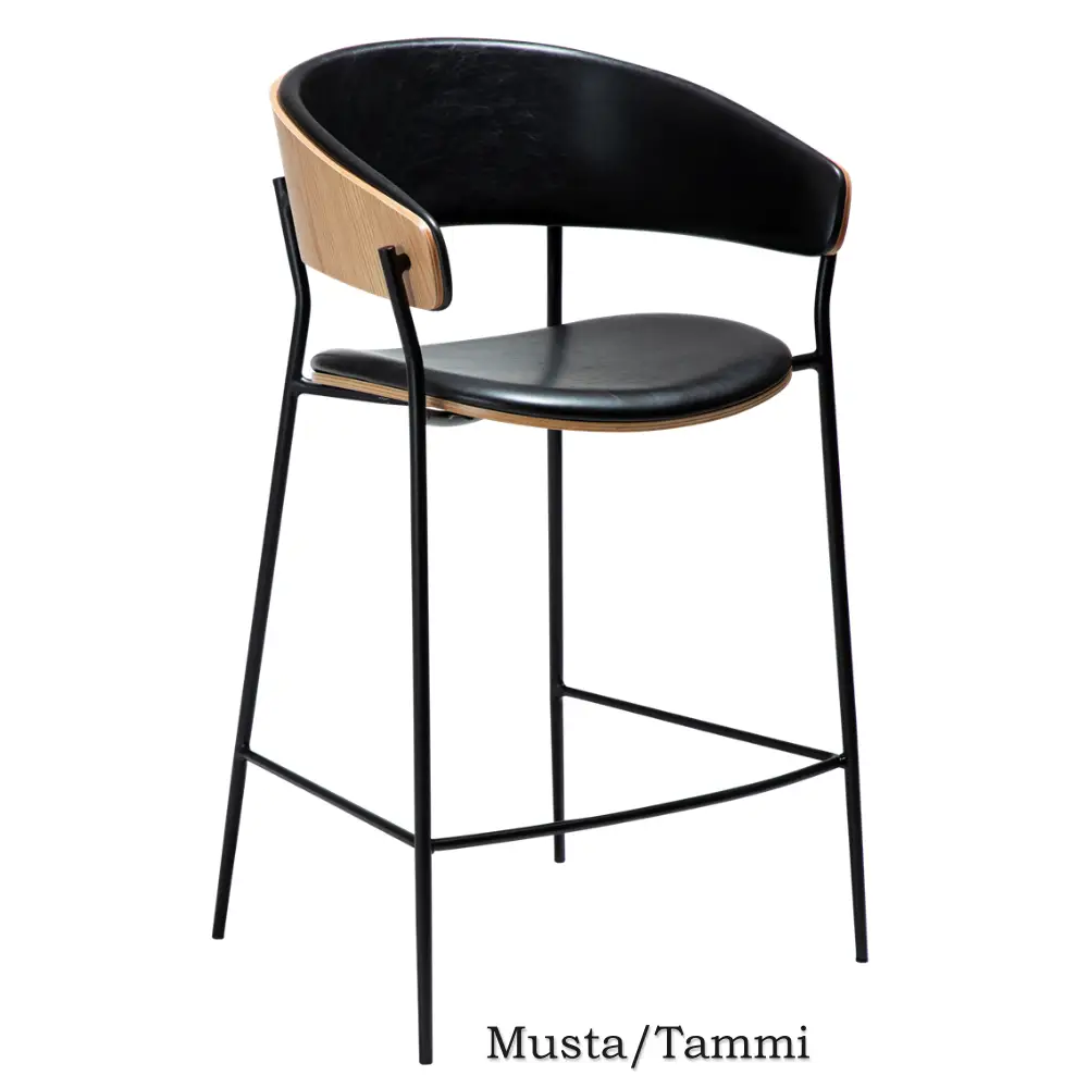 Crib-baarituolin istuin on valmistettu vanerista ja verhoiltu miellyttävällä keinonahalla, joka tarjoaa erinomaisen istuinmukavuuden ja helpon puhtaanapidon. Värivaihtoehdot – musta/tammi selkänoja, musta/pähkinä tai musta/valkovahattu tammi – tekevät tuolin sovittamisesta erilaisiin sisustuksiin vaivatonta. Mustat pulverimaalatut metallijalat tuovat kokonaisuuteen näyttävän ja modernin kontrastin.